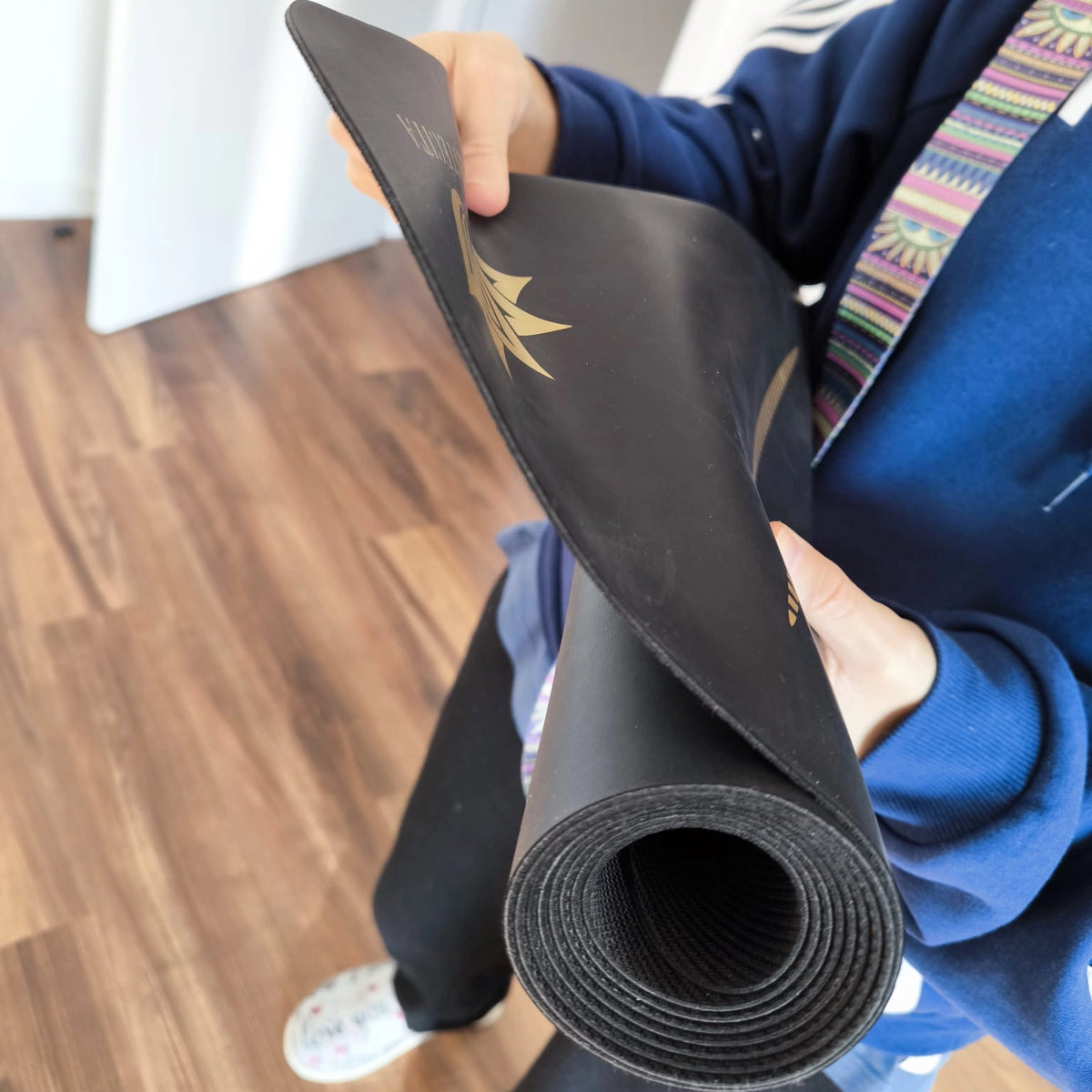 Seu design de mandala , símbolo de equilíbrio e energia, acompanha você em cada prática. A superfície antiderrapante garante aderência e segurança , mesmo em pisos irregulares.